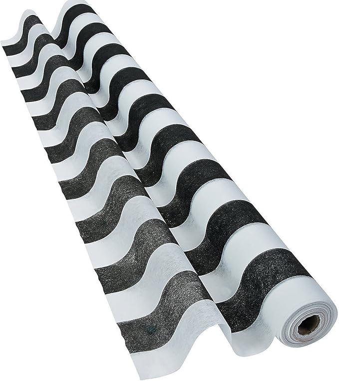 - Roll of gossamer fabric with black and white stripes.